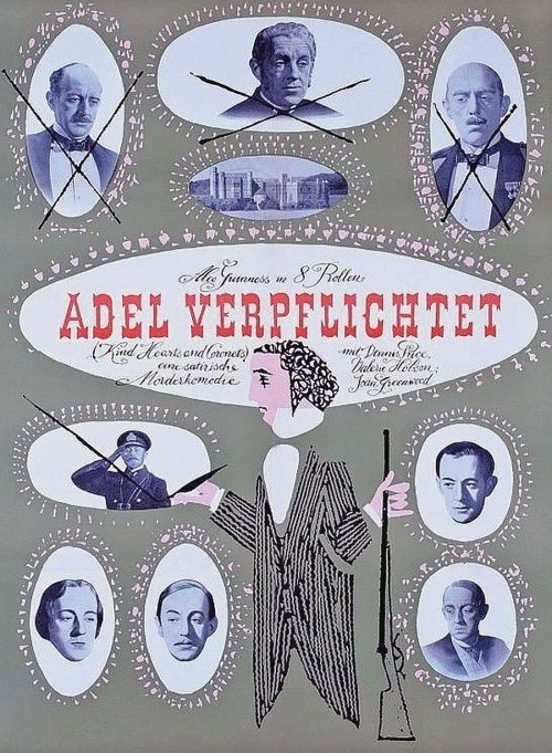 Alec Guinness' Verwandlungskunst in dieser tiefschwarzen englischen Komödie ist wohl einmalig in der Filmgeschichte: er spielt alle acht Opfer des rachsüchtigen Louis. Während der Dreharbeiten mußte Guiness oft in kürzester Zeit zwischen seinen Rollen wechseln. Er verkörpert einen Herzog, einen Bankier und dessen Sohn, eine militante Frauenrechtlerin und einen Alkoholiker. Höhepunkt des Films ist die Szene, in der die Familie zum Begräbnis zusammenkommt und man durch geschickte Kopiertechnik sechsmal Alec Guinness sieht. Während der Produktion galt das Thema des Films als riskant, weil die Produzenten Zweifel hatten, ob das britische Publikum die Ironie akzeptieren würde. Die schwarze Komödie zählt heute zu den besten britischen Filmen aller Zeiten. _**Fazit:**_ Klassiker der schwarzen Filmkomödie, der von der chamäleonhaften Verwandlungskunst des Hauptdarstellers ebenso lebt wie von der skurrilen Logik des Drehbuchs.