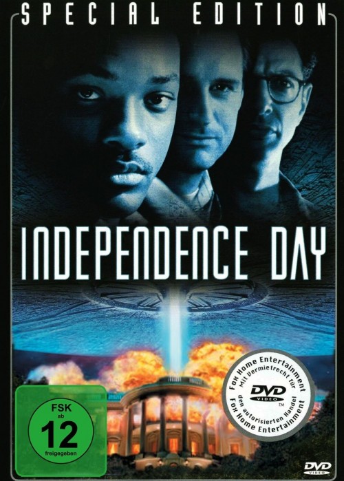 Schon 1996 im Kino hat mir „Independence Day“, kurz „ID4“ gefallen und auch zehn Jahre später auf DVD unterhält der Film bestens. Die Spezial-Effekte haben nichts von ihrer Wirkung verloren und wirken einfach bombastisch und wenn das erste Mal die riesigen fliegenden Untertassen auf dem Bildschirm auftauchen kann einem auch heute noch der Atem stocken. Natürlich sind die Hauptcharaktere Steven Hiller (Will Smith), President Thomas J. Whitmore (Bill Pullman) und David Levenson (Jeff Goldblum) in einem Science-Fiction-Reißer wie „ID4“ wenig ausgeformt und natürlich sind die Amerikaner die Weltenretter, doch was soll es. „ID4“ will kein ernster Film sein, er will unterhalten. Als mehr als gelungenes Popcornkino darf man den Film einfach nicht sehen. Hier nach einer versteckten Message zu suche wäre falsch und das braucht man auch gar nicht, denn die Aussage die der Film macht liegt auf der Hand. Völker aller Länder vereinigt euch! Betrachten wir einfach mal die einzelnen Schauspieler. So war „ID4“ für Will Smith (Men in Black, Hitch) der Start zu einer großen Hollywoodkarriere, auch wenn er vorher schon in „Bad Boys“ mitgewirkt hat und mit Bill Pullmann (Scary Movie 4, Lake Placid) und Jeff Goldblum (Threshold, Jurassic Park) hat man zwei Mimen verpflichtet die durchaus alleine durch ihren Namen Zuschauer anziehen. Hinzu kommt, dass die drei Hauptdarsteller, trotz der schwachen Charakterzeichnung im Drehbuch, das beste aus ihren Rollen herausholen und Will Smith Kampf mit dem gestrandeten Alien oder Pullmanns flammende Rede zum Unabhängigkeitstag werden nicht nur mir noch lange in Erinnerung bleiben. Auch der von David Arnold (Zoolander, Vier Brüder) komponierte Soundtrack brennt sich in den Gehirnen der Zuschauer ein. Zu jedem Zeitpunkt passt die orchestrale Musik perfekt zu den Bildern und jeder der einmal das „ID4“-Thema gehört hat, erkennt dieses ohne die dazugehörigen Bilder sofort wieder. Alleine die ersten Takte reichen dabei aus um die Musik dem Film zuzuordnen. Der Soundtrack zu „ID4“ ist aus diesem Grund auch ein der wenigen orchestralen Soundtrack-CDs die sich in meinem Besitz befinden. [Sneakfilm.de]